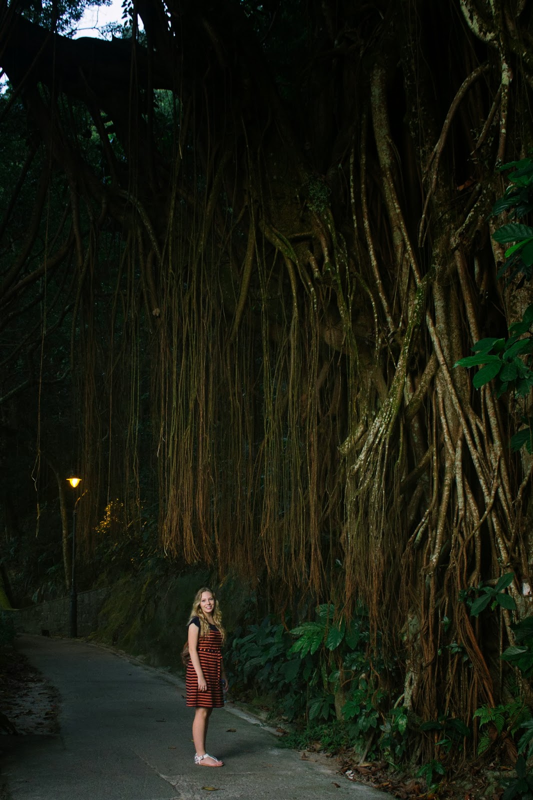 After spending time looking at that amazing view and listening to an audio guide about Hong Kong, we decided to take the hour-long walk around Victoria’s Peak. I’m glad we did because even though it was hot and muggy, it was also beautiful. It felt like exploring a jungle with an occasional streetlamp -- it reminded me of Narnia, with the random streetlamp in the middle of the forest.